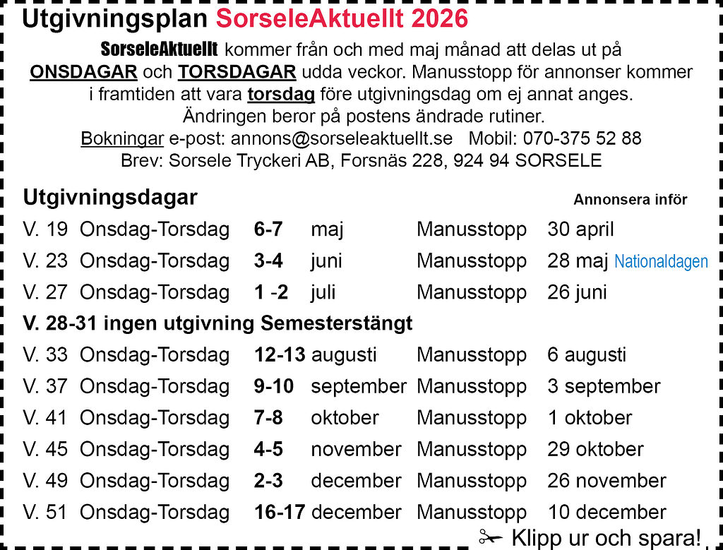 Sorseleaktuellt annonsbladet som når alla!